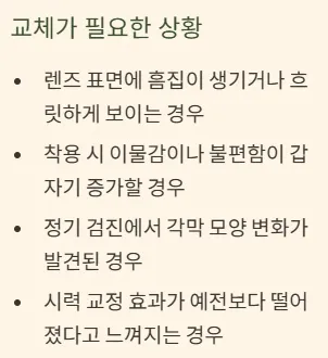 - 렌즈가 불편하거나 흐릿하면 즉시 안과 방문