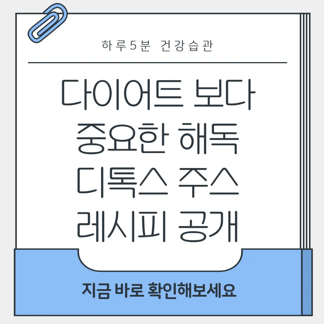 아침 공복에 마시는 한 잔의 주스가 하루의 건강을 결정짓습니다. 삶아 먹는 해독주스와 달리, 생으로 마시는 디톡스 주스는 비타민과 효소가 살아 있어 몸속 해독 효과가 더 뛰어납니다. 이번 글에서는 조리 없이 생으로 만드는 디톡스 주스 3가지 조합을 중심으로, 장 건강, 간 기능 개선, 피부 트러블 예방 등 실질적인 효과를 중심으로 구성했습니다. 바쁜 일상 속에서도 쉽게 실천할 수 있는 생디톡스 주스 레시피로 건강한 아침 루틴을 시작해보세요.목차왜 해독이 다이어트보다 중요할까?디톡스 주스의 핵심은 ‘생으로 마시기’아침 공복에 좋은 디톡스 주스 조합 3가지주스 섭취 시간과 실천 팁3일 챌린지로 효과 빠르게 보기 → 다이어트와 피부 개선에 좋은 해독주스 레시피 바로 확인하기← 왜 해독이 다이어트보다 중요할까..